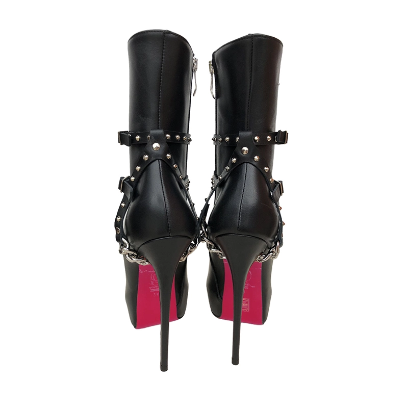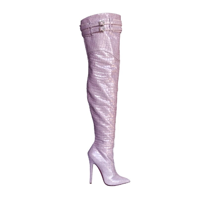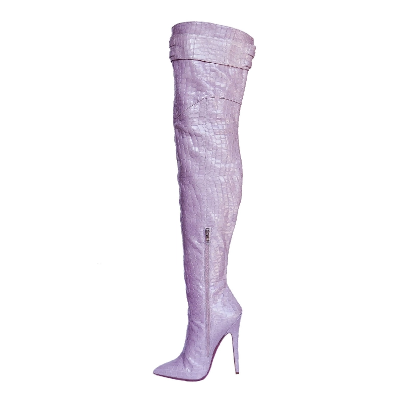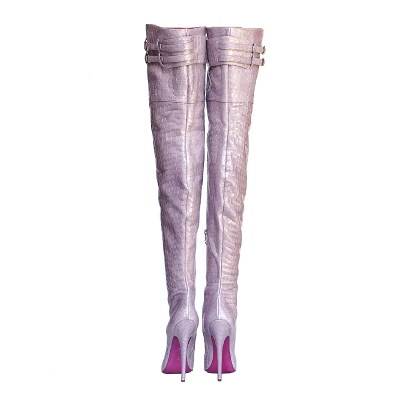 Anjo is a beautifully shaped knee high corset boot with a extreme long point, with a towering heel and empowering feel.