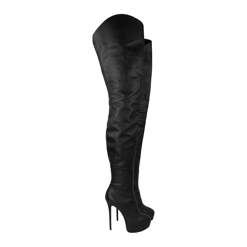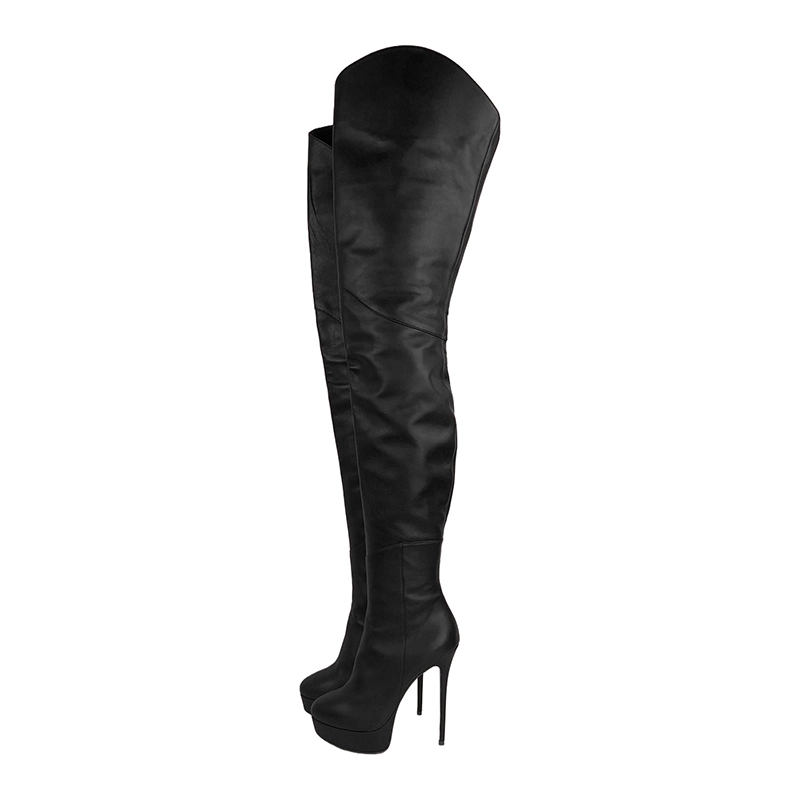 Divina is a beautifully shaped knee high boot, with a towering heel and empowering feel. Handmade with the finest materials, this model can be custom made with your personal measurements for a glove-like fit.